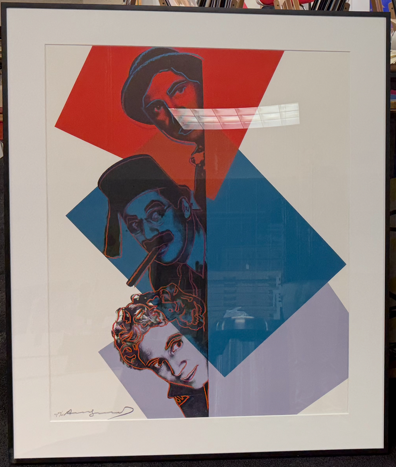 This example is an exceptionally rare Trial Proof, one of only 25, making it a unique variant distinct from the regular edition. Trial Proofs often exhibit adjustments in color, composition, or layering, giving collectors insight into Warhol’s creative process and providing a one-of-a-kind iteration of the image. Screenprinted on Lenox Museum Board and uniquely designated as a proof, this work stands apart both artistically and historically. Its rarity, combined with the iconic subject matter and Warhol’s unmistakable visual vocabulary, makes this Marx Brothers Trial Proof a highly desirable and significant work within the artist’s print oeuvre.