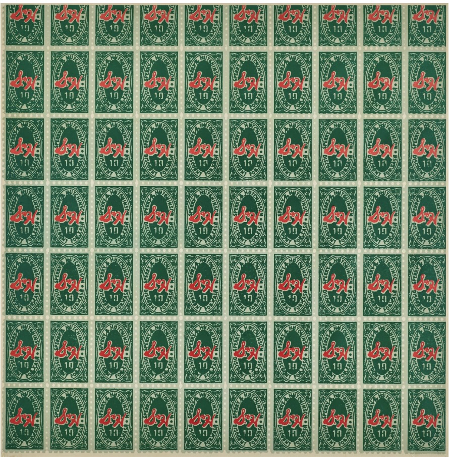 Andy Warhol’s S&H Green Stamps is a quintessential expression of his Pop sensibility, transforming an everyday consumer reward into a bold meditation on value, desire, and mass culture. Originally created in the mid-1960s, the work elevates the familiar trading stamps—once collected obsessively by American households—into the realm of fine art. By isolating and enlarging this mundane object, Warhol collapses the distinction between commercial ephemera and artistic icon, reinforcing his belief that consumer goods, branding, and repetition were the true visual language of modern life. The offset lithograph, printed in vivid colors on thin wove paper, carries the immediacy and flatness of advertising while simultaneously inviting reflection on how value is assigned—whether to groceries, stamps, or art itself.