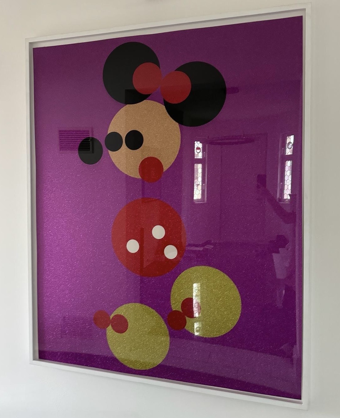 Hirst’s 2016 artwork Minnie (large) exemplifies his engagement with popular culture and aesthetics. This silkscreen print with glitter, measuring a grand 60 × 48 inches, was produced in an edition of 50, blending high-end artistic techniques with the recognizable iconography of Disney’s Minnie Mouse. By incorporating glitter, a material associated with childhood and playfulness, Hirst adds a layer of glamour to the beloved cartoon character, while simultaneously alluding to the commodification of culture. The work reflects Hirst’s ongoing interest in how icons and symbols—whether related to art, religion, or commerce—are imbued with value. With its bold imagery and sparkling finish, Minnie (large) bridges the gap between fine art and mass culture, reflecting Hirst’s skill in merging popular symbols with deeper existential themes.