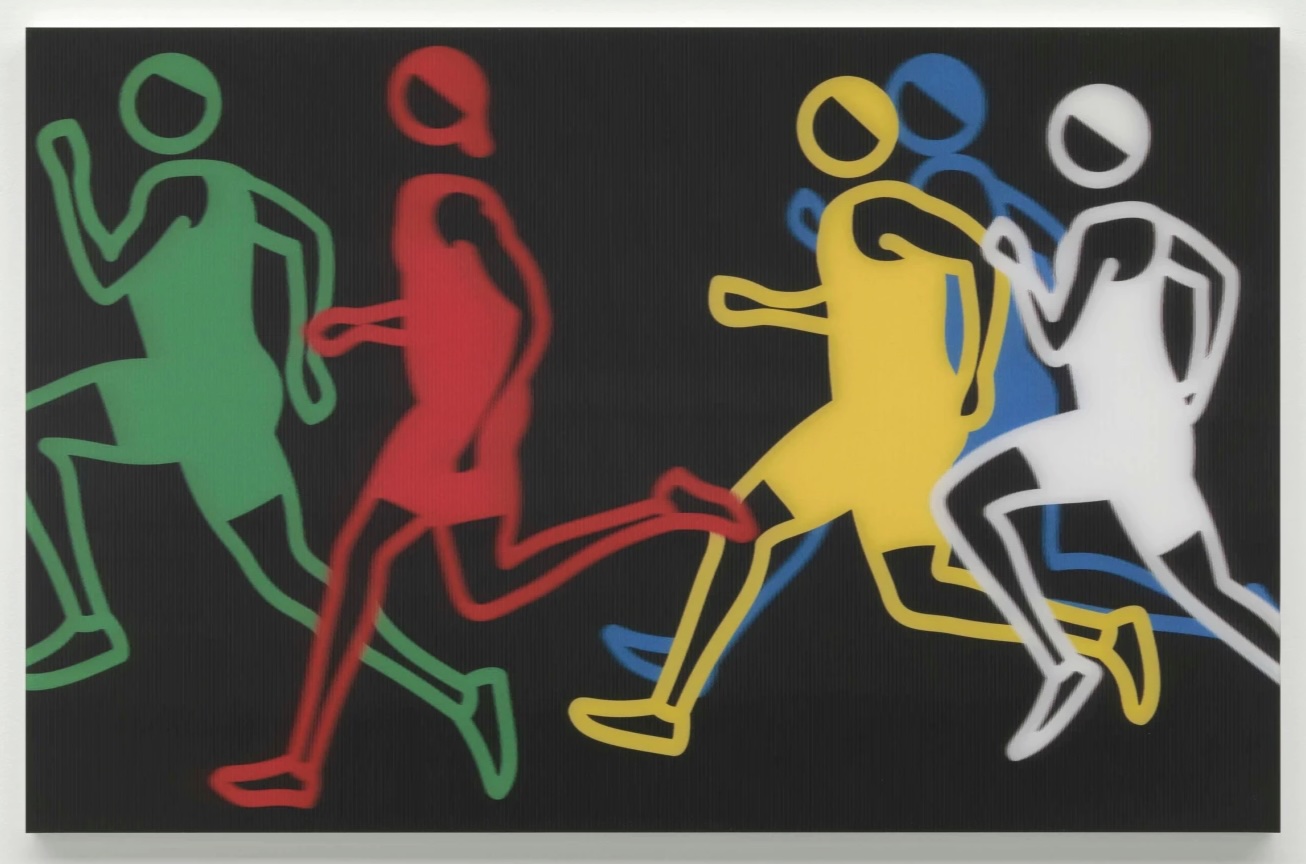Julian Opie is internationally recognized for his ability to distill the human figure into a refined visual language of clean lines, flattened color, and rhythmic repetition. Drawing equally from art history, graphic design, and digital aesthetics, Opie reduces movement and identity to their most essential elements while retaining an unmistakable sense of presence and vitality. His work often explores how contemporary life—commuting, walking, running—can be transformed into universal symbols, rendered with clarity and immediacy that resonate across cultures.
