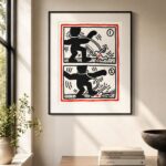 Haring’s work was never detached from the world around him, and Free South Africa stands as a powerful example of art as activism. At a time when international awareness and pressure against apartheid were building, Haring used his platform to amplify the call for liberation and equality. The rhythmic lines and kinetic energy—hallmarks of his style—imbue the scene with movement, but also tension, emphasizing both struggle and resistance. By employing a visual vocabulary rooted in street art and public space, Haring ensured that his message resonated beyond traditional art audiences, aligning his practice with protest and solidarity. Today, the work remains not only a compelling piece of graphic art but also a historical document of artistic resistance, underscoring Haring’s belief that art can—and should—be a vehicle for social change.